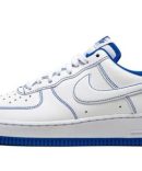 The Nike Air Force 1 Low ‘Contrast Stitch – Game Royal’ is a slightly modified take on the model’s iconic ‘White on White’ colorway. Part of Nike’s ‘Contrast Stitch’ collection of Air Force 1s. the ‘Game Royal’ is a highly versatile design on one of the most popular shoes on the planet. White leather can be found on the perforated toe. mid-panel. and heel. Game Royal contrast stitching outlines each panel on the upper. including the tonal Swoosh logo on both sides of the shoe. A blue ‘Nike Air’ logo appears on the heel and ‘Nike Air’ with a Swoosh graces the tongue tag on the white nylon tongue. Tonal ‘Air’ detailing can be found on the side of the white midsole and a contrasting Game Royal outsole adds a pop of color underneath the shoe.