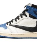 The Travis Scott x Fragment x Air Jordan 1 High OG ‘Military Blue’ is a three way collaboration between the Houston rapper. the Japanese streetwear outfit. and Jordan Brand on Michael Jordan’s first signature shoe. Released alongside an Air Jordan 1 Low. the Travis Scott and Hiroshi Fujiwara-designed high-top Jordan 1 ‘Military Blue’ combines the distinct aesthetics of both Scott and Fujiwara on the iconic retro basketball shoe. Supple Military Blue leather appears on the perforated toe and on the collar and heel. Contrasting white tumbled leather is located on the toe cap. forefoot. eyelets. and mid-panel. The oversized backwards black leather Swoosh is a call back to the styling of the hip-hop star’s first Air Jordan 1 collaboration from 2019. A black ‘Wings’ logo resides on the collar. Industrial-style branding. as seen on fragment’s collaborations with Nike and Jordan Brand in the past. appears in black text on the medial side of the cream rubber midsole. Dual ‘Cactus Jack’ and Fragment insignia can be found on the back of the left and right shoe. respectively. The Travis Scott x Fragment x Air Jordan 1 High OG ‘Military Blue’ is one of the most desirable sneaker releases of 2021. Release date: July 29. 2021