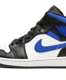The Air Jordan 1 Mid ‘Racer Blue/Black/White’ is a timeless look for the mid-top silhouette of Michael Jordan’s first signature shoe. One of several easy-wearing looks for the Air Jordan 1 Mid released by Jordan Brand in 2021. the ‘Racer Blue/Black/White’ colorway places white leather on the perforated toe and mid-panel. Black leather contrasts the look on the forefoot. eyelets. collar. and heel. Jordan Brand complements the neutral panels with a Racer Blue leather Swoosh on either side and a Racer Blue ‘Wings’ logo on the collar. The same shade of blue also appears on the padded suede collar and on the Jumpman and ‘Air’ detailing printed onto the black nylon tongue tag on the black nylon tongue. A simple white midsole and black outsole combination completes the look of yet another clean example of the Air Jordan 1 Mid.