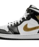 The Air Jordan 1 Mid ‘Black/Gold Patent Leather’ is a premium edition of the classic model featuring a striking patent leather upper in black. white. and metallic gold. The mid-top Jordan 1 receives this refined look in the always-stylish color combination that is reminiscent of the Air Jordan 1 High ‘Gold Top 3.’ but with the color blocking remixed for a fresh new appearance and feel. The Air Jordan 1 Mid ‘Black/Gold Patent Leather’ released in early 2019.