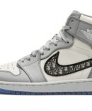 The Dior x Air Jordan 1 High is arguably the most desirable sneaker collaboration of 2020. Produced in Italy in extremely limited quantities. Dior’s first ever collaboration with Jordan Brand featured a multilayered release rollout that only stoked demand for one of the most sought after Jordan 1s in recent history. Employing a minimal appearance that parallels the original ‘White/Grey’ Jordan 1 from 1985. the Dior variation features supple Dior grey leather overlays on the forefoot. eyelets. collar. and heel. White leather dots the mid-panel and perforated toe. An embroidered monogram Swoosh appears on either side and an ‘Air Dior’ Wings logo can be found on the collar. A white rubber midsole and icy blue translucent outsole tie together the look of the understated Dior x Air Jordan 1. The Dior x Air Jordan 1 High was released on June 25. 2020.