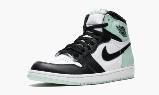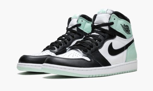White/black/mint leather Air Jordan 1 Retro High OG NRG sneakers from jordan featuring round toe. flat rubber sole. front lace-up fastening. branded insole. signature Swoosh logo detail and ankle-length. These styles are supplied by a premium sneaker marketplace. Stocking only the most sought-after footwear. they source and curate some of the most hard to find sneakers from around the world.