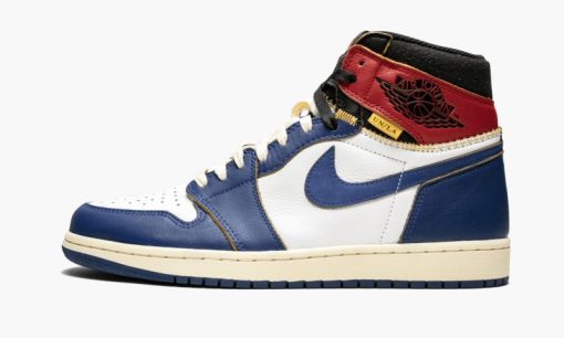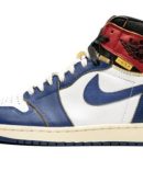 The Union x Air Jordan 1 Storm Blue is one of two special editions of Michael Jordan’s first signature shoe from the Los Angeles menswear boutique. The cut and paste theme of the collaboration by Union combines two original colorways of the Air Jordan 1 into one shoe. For the Storm Blue colorway. the design combines the body of the original white and blue version with the red and black ankle of the ‘Bred’ colorway. The colorway has a vintage look with yellowed leather that has a distressed treatment around the ankle paneling. A ‘UN/LA’ patch is added to each ankle to complete the unique construction. The Union x Air Jordan 1 Storm Blue was released in limited quantities in November 2018.