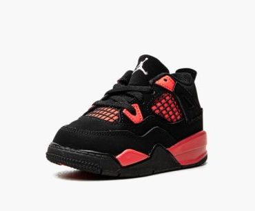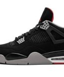 This Air Jordan 4 Bred is the 2019 retro of the iconic colorway of Michael Jordan’s fourth signature shoe. The famous black and red version of the Jordan 4 returned in the spring of 2019 with its original Nike Air branding on the heel for the first time since its first retro release in 1999. Now 20 years after that first retro and 30 years after its initial 1989 release. the Bred Air Jordan 4 looks just as outstanding as ever. This true-to-OG retro features a black Durabuck (synthetic nubuck) upper with grey. red. and white accents throughout. In addition to the large Nike Air logo on the heel tab. the original Nike branding is also present on the outsole and sockliner. The Air Jordan 4 Bred released on May 4. 2019.