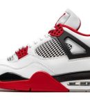 The Air Jordan 4 ‘Fire Red 2020’ is a November 2020 release of an original colorway of Michael Jordan’s fourth signature shoe. This reissue of the ‘Fire Red’ marks the first time the design has featured the iconic ‘Nike Air’ branding on the heel since the original release way back in 1989. The rest of the shoe is also as close to the original as possible. which includes a return to the ‘OG’ shape and color scheme. The upper features smooth white leather on the toe. collar. and heel. White netting can be found on both the throat and mid-panel. The eyelets. liner. and outsole are done up in Fire Red as a salute to the original look. Branding appears in the form of a red Jumpman on the tongue tag and the red ‘Nike Air’ logo on the back of the shoe. A black mudguard and white midsole with a visible Air unit in the heel put the finishing touches on this timeless look for the Jordan 4. Release date: November 28. 2020.