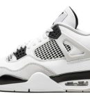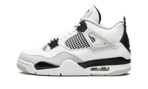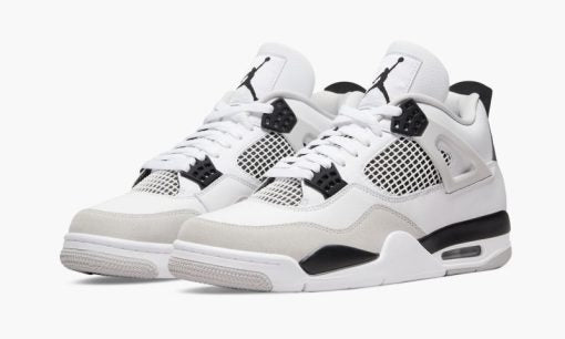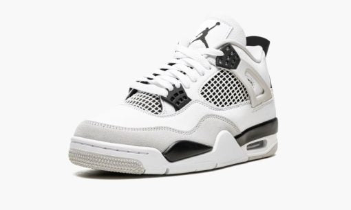 The Air Jordan 4 Military Black is a neutral colorway of the retro basketball shoe designed in the same color block as the model’s popular. original Military Blue style from 1989. The Jordan 4 Black Military is undoubtedly inspired by the Jordan 4 Military from 1989 as it features the same color design as the throwback colorway. just with black accents instead of blue. The shoe’s upper is constructed with a white leather base with grey suede on the forefoot overlay. The TPU eyelets and heel counter are accented in black. As are the underlays beneath the netting on the sides and on the tongue. Classic Jumpman logo detailing can be found on the heel and on the tongue tag. Release date: May 21. 2022