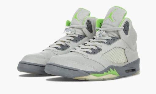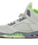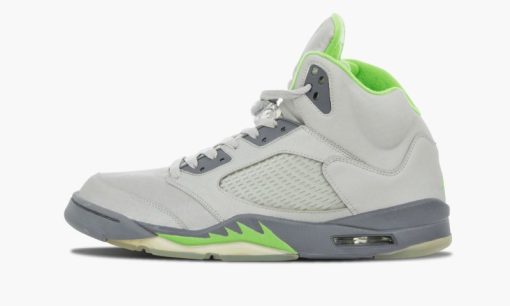 This unique colorway of the Air Jordan 5 from 2006 features a reflective silver upper accented with ‘Green Bean’ throughout.