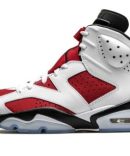 The Air Jordan 6 ‘Carmine 2021’ is an original colorway of Michael Jordan’s sixth signature shoe that was re-released by Jordan Brand in 2021. This version of the ‘Carmine’ brings back the original ‘Nike Air’ branding on the back of the shoe for the first time since the colorway’s debut in 1991. The return to the ‘OG’ styling coincides with the Jordan 6’s 30-year-anniversary celebration in 2021. Along with the ‘Nike Air’ embroidery on the heel. the rest of the shoe retains the correct height and panel shapes as the inaugural release. That includes white leather overlays on the forefoot. mid-panel. and eyelets above the fiery red synthetic nubuck base. Perforations on either side of the shoe and collar are consistent with the original styling of the Air Jordan 6. A black liner and neoprene lace shroud with black Jumpman embroidery compliment the shoe’s retro style. The ‘Nike Air’ logo on the heel sits beneath a spoiler-style heel tab to complete the look. Release date: February 13. 2021.