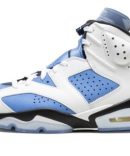The Air Jordan 6 ‘UNC’ is a collegiate-inspired colorway of Michael Jordan’s sixth signature shoe that nods to Jordan’s alma mater. the North Carolina Tar Heels. Released in March 2022. the Jordan 6 ‘UNC’ is yet another colorway from Jordan’s signature shoe collection that employs the team uniform colors of the Tar Heels on its design. and it doesn’t disappoint. The ‘UNC’ mimics the color block of the Jordan 6’s original ‘Carmine’ colorway from 1991. The University Blue synthetic nubuck base gives way to contrasting white leather overlays on the shoe’s upper. The neoprene lace shroud with black Jumpman branding appears in University Blue. as well. Additional baby blue accenting appears on the spoiler on the back of the shoe and on the tongue. An embroidered ‘Team Jordan’ patch on the heel is inspired by product tags found on the bottom of basketball jerseys. Release date: March 5. 2022