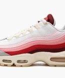 The Nike Air Max 95 Anatomy of Air is a unique colorway of the retro running shoe that draws from its own design origins inspired by human anatomy. This Air Max 95 features wavy panels on either side of the shoe in muscle-inspired colors. specifically in gradient shades of pink to burgundy. A light grey suede toe cap contrasts the look. Branding appears in the form of a white Swoosh on the collar. and Air Max detailing on the top of the burgundy-colored tongue. Underfoot. a cream-colored foam midsole with visible Max Air units in the forefoot and heel complete the look. Release date: July 28. 2022