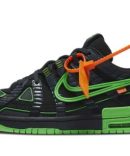 The Off-White x Nike Air Rubber Dunk ‘Green Strike’ is a silhouette created by Virgil Abloh and Nike that siphons inspiration from the Nike SB Dunk and P-6000. A Fall 2020 release. the Air Rubber Dunk is a new-age take on the venerable Dunk model that incorporates elements of Nike’s performance heritage. The upper is reminiscent of the Dunk in shape. and adds multiple layers and textures courtesy of the P-6000. Vertical black leather overlays can be found across the tonal mesh base. A large green rubber outline Swoosh dots either side. More green piping is located near the toe. forefoot. and above the black rubber midsole. Off-White’s signature ‘Shoelaces’ theme appears in green lettering on the laces of the left and right shoes. An orange hang tag appears beneath the Swoosh. Green detailing surrounds the small Air window in the heel. Release date: October 1. 2020.