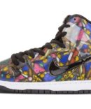 Part of the ‘Holy Grail’ collection from Nike SB and Boston sneaker shop Concepts. the Dunk High is transformed with one of its most unique constructions ever. The multi-colored upper is inspired by stained glass windows. and is complete with see-through ankle panels and patent leather Swooshes.