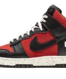 The Undercover x Nike Dunk High 1985 ‘UBA’ is a collaboration between Jun Takahashi’s Japan based streetwear brand and Nike on the retro basketball shoe in a colorway dedicated to a fictional basketball league. The ‘UBA’ or ‘Undercover Basketball Association’ is Takahashi’s take on the Dunk that revives its original 1985 style with true-to-original panel shapes and proportions. Details include a pebbled Gym Red leather base with contrasting black leather overlays and Swoosh branding. White ‘UBA’ and ‘Undercover Basketball Association’ detailing appears on the lateral side of the heel. Like the first production Dunk. the Dunk ’85 features a tall tongue that extends past the collar. Dual ‘Undercover’ and ‘Nike’ branding is found on the tongue tag. Takahashi puts the finishing touch on his ‘UBA’ Dunk collaboration by painting speckles over the Sail rubber midsole. Release date: July 28. 2021