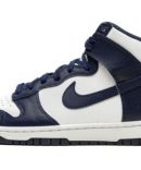 The Nike Dunk High ‘Championship Navy.’ also known as the ‘Midnight Navy.’ is a two-tone. navy-and-white colorway of the vintage basketball shoe that salutes the Villanova Wildcats. An original style of the Dunk from the college basketball-inspired ‘Be True to Your School’ collection from 1985. the ‘Championship Navy’ appears in the team uniform colors of the Wildcats. and is a classic Dunk release. The upper features white leather on the perforated toe. mid-panel. collar. and heel. Contrasting navy blue leather is found on the overlays and Swoosh. The ‘Nike’ and Swoosh branding on the nylon tongue appear in Championship Navy. as does the laces layered over the white nylon tongue and the rubber outsole underneath the white midsole. Release date: October 8. 2021