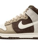 The Nike Dunk High ‘Light Chocolate’ is an appealing earth-toned colorway of the vintage basketball shoe that was released in August 2021. Versatile in ‘Light Chocolate.’ this high-top Dunk features Sail-colored leather on the perforated toe that’s contrasted by Khaki leather overlays on the toe cap. forefoot. and eyelets. The mid-panel. collar. and heel appear in Light Chocolate suede. A Sail leather Swoosh logo appears on the sides and a light grey suede overlay is found on the heel. Contrasting green ‘Nike’ and Swoosh branding is located on the white nylon tongue tag. Release date: August 1. 2021