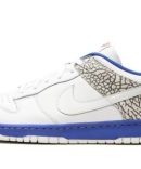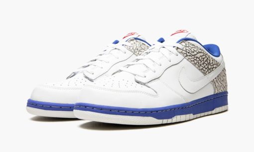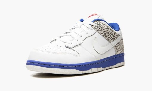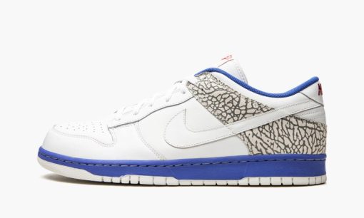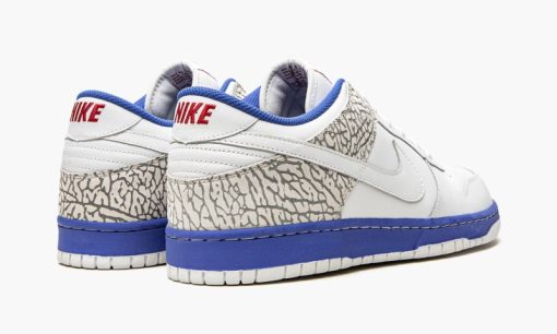 White/blue leather Dunk Low CL sneakers from NIKE featuring signature Swoosh logo detail. embroidered logo to the rear. contrasting panel detail. round toe. front lace-up fastening. logo patch at the tongue. branded insole and rubber sole. These styles are supplied by a premium sneaker marketplace. Stocking only the most sought-after footwear. they source and curate some of the most hard to find sneakers from around the world..