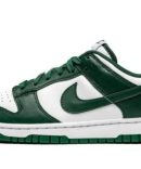 The Nike Dunk Low ‘Team Green’ is based on team uniform colors of the Michigan State Spartans college basketball team. The ‘Team Green’ is inspired by Nike’s original ‘Be True to Your School’ pack that was dedicated to some of the top college basketball programs in the country during the mid-to-late 1980s. In 2020. Nike released the ‘Spartan Green’ Dunk High. which is basically a high-top version of the ‘Team Green’ seen here. Like the aforementioned design. the ‘Team Green’ features a white leather base with contrasting Team Green leather overlaid panels. A green leather Swoosh appears on either side and white ‘Nike’ detailing is embroidered on the heel. Green laces are layered over the white nylon tongue. A white midsole and green outsole finish off the look of the Nike Dunk Low based on the color block of the Michigan State Spartans’ team uniforms. Release date: April 16. 2021.
