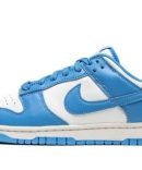 The Nike Dunk Low ‘University Blue’ is yet another collegiate-inspired colorway of the retro basketball and lifestyle shoe by Nike. Originating as part of Nike’s ‘Be True to Your School’ collection dedicated to some of the most successful college basketball programs of the mid-80s. the Dunk will forever be tied to basketball. especially when Nike imagines the venerable shoe in colorways like the ‘University Blue.’ While not an official ‘UNC’ colorway. the look draws favorably from the team uniform colors of the North Carolina Tar Heels. The perforated toe. mid-panel. collar. and heel feature a white leather construction. University Blue leather can be found on the forefoot. eyelets. heel. and Swoosh branding. The two-tone color block is reminiscent of the Dunk’s original college basketball-inspired colorways. A white ‘Nike’ logo is embroidered onto the heel and light blue ‘Nike’ and Swoosh insignias appear on the white nylon tongue tag. A cream colored rubber midsole and University Blue outsole round out the look. Release date: June 24. 2021.