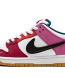 The Parra x Nike SB Dunk Low ‘Friends & Family’ is an unreleased. ‘Friends & Family’ exclusive colorway that was given to those close to the Dutch artist in 2021. The limited edition style followed the release of the retail version of Parra’s Nike SB Dunk Low ‘Abstract Art’ collaboration from Summer 2021 that honored the 2021 Summer Olympics. where skateboarding became an olympic sport for the first time. In typical Parra style. the ‘Friends & Family’ features mismatched suede panels in pink. teal. red. and orange. A white leather base allows for each overlay to garner attention. A short black leather Swoosh appears on both sides. Overall. the mismatched panels and shorter Swoosh design are a departure from the artful look of the panels and traditional Swoosh branding found on the ‘Abstract Art.’ The ‘Friends & Family’ does retain the ‘Abstract Art’s’ colorful detailing on the heel tab and on the underside of the tongue. ‘Parra’ and ‘Nike SB’ branding appears on the left and right heel. respectively. A white midsole and gum rubber outsole finish off the look. The Parra x Nike SB Dunk Low ‘Friends & Family’ is rumored to be limited to 120 pairs.