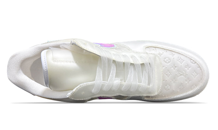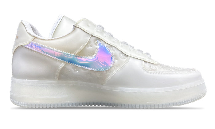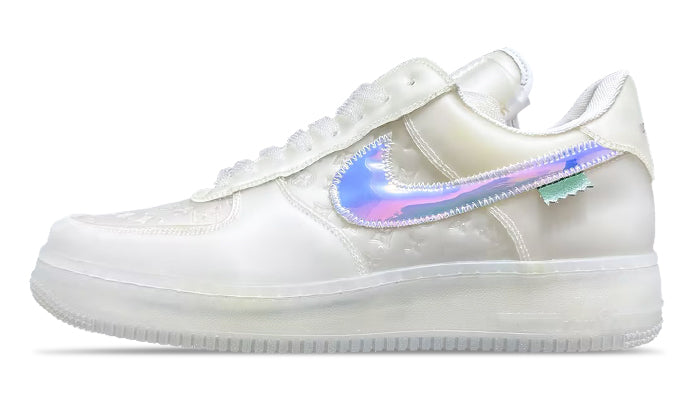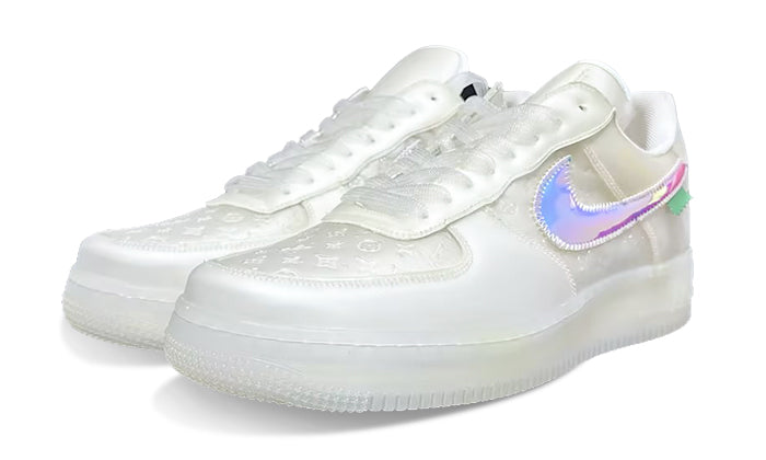 Details: The shoe features Louis Vuitton branding on the tongue. heel. and side panels. as well as an embossed Nike logo on the heel. The shoe also includes a special Louis Vuitton x Nike hangtag.