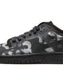 The Women’s Comme des Garcons x Nike Dunk Low ‘Monogram Print’ marks yet another high-profile collaboration between two streetwear stalwarts. Maxing out on bold branding. this desirable makeup features several intricate details that fans of Comme des Garcons’ collections with Nike have come to appreciate. The upper displays misplaced letters of ‘Comme des Garcons’ in a monogram pattern underneath a black Nexkin material. which is a translucent fabric with stretch capabilities that molds to the wearer’s foot. A black Swoosh resides on the mid-panel. Black waxed cotton laces and a sewn-on black leather heel patch amount to the premium styling long associated with Comme des Garcons. The Women’s Comme des Garcons x Nike Dunk Low ‘Monogram Print’ was released on May 14. 2020.
