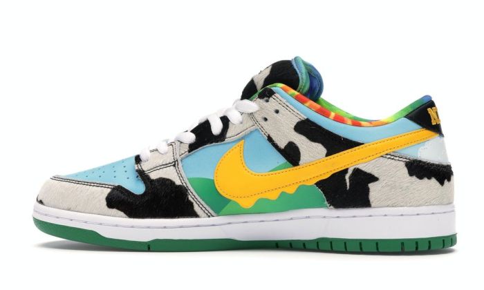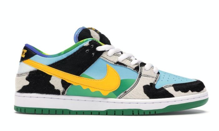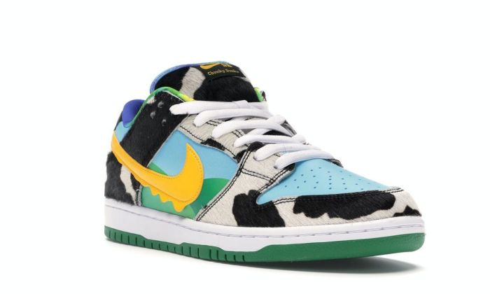 The Nike SB Dunk Low Ben & Jerry’s Chunky Dunky is a highly sought-after sneaker that was released on May 23rd. 2020 as part of Nike’s collaboration with Ben & Jerry’s ice cream. The shoe was inspired by Ben & Jerry’s Chunky Monkey flavor and features a playful and colorful design that pays homage to the popular ice cream brand. Here are some of the details: