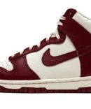 The Women’s Nike Dunk High ‘Team Red’ is a women’s exclusive colorway of the venerable high-top basketball. skateboarding. and lifestyle shoe. The ‘Team Red’ edition is dressed in a similar white-and-red color block that’s reminiscent of an original colorway of the Dunk: 1985’s ‘St. John’s’ design from the ‘Be True to Your School’ pack. Though slightly darker in hue. the red leather overlays on the forefoot. eyelets. collar. and heel are arranged in a similar fashion to the ‘St. John’s.’ Moreover. the ‘Team Red’ displays a vintage inspired cream leather base. A red nylon tongue tag with white ‘Nike’ branding provides a retro vibe. Underfoot. a cream midsole and contrasting red outsole complete the look of this women’s Nike Dunk. Release date: March 10. 2021.