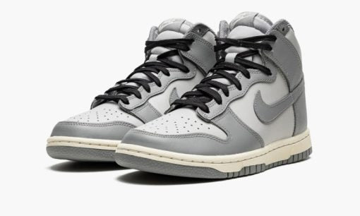 The Women’s Nike Dunk High ‘Aged Grey’ is a women’s-only colorway of the high-top retro basketball shoe with aged. vintage-inspired details. Playing right into the Dunk’s throwback looks and attributes. the ‘Aged Grey’ edition is complete with several thoughtful. vintage-esque design elements. including an oxidized rubber midsole. The shoe’s greyscale Grey Fog and Particle Grey leather panels are arranged in a two-tone color scheme reminiscent of the college basketball-inspired styles from the Dunk’s original ‘Be True to Your School’ pack from 1985. Classic ‘Nike’ and Swoosh detailing appears on the tongue tag. Black laces contrast the appearance of the upper. Release date: September 7. 2021