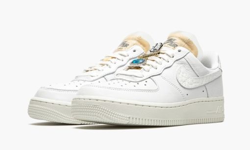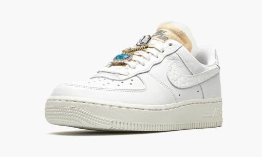 The Women’s Nike Air Force 1 Low ‘Bling’ is fitted in women’s sizing and features a piece of jewelry for an elevated design of the venerable ‘Uptown.’ This Summer 2020 release incorporates three pieces of ‘bling’ for a decidedly luxurious appearance. The upper displays a white leather construction with a more textured tonal tumbled leather on the Swoosh on either side and the embroidered ‘Nike Air’ heel tab. The beige nylon tongue with silver ‘Nike Air’ insignia is contrasted by flashy Swoosh and Nike jewels woven into the design of the laces. A cream colored rubber midsole with ‘Air’ branding on the heel completes the look. Release date: Summer 2020.