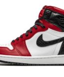 The Women’s Air Jordan 1 High ‘Satin Snake’ is an eccentric colorway in women’s sizing of Michael Jordan’s popular signature shoe. Jordan Brand’s reimagining of the classic ‘Chicago’ design in lifestyle materials such as satin and faux snakeskin continues on this luxurious ‘Satin Snake’ makeup. Keeping the color block close to the original ‘Chicago’ colorway. the upper features a white leather mid-panel and perforated toe. Contrasting red leather overlays dot the forefoot. eyelets. and collar. A black snakeskin leather covers the Swoosh. ankle collar. and heel. Red satin is utilized for the tongue and inner lining. while waxed black cotton laces finish the look of this opulent Jordan 1 in women’s sizing. Release date: August 6. 2020.