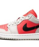 The Women’s Air Jordan 1 Low ‘Light Iron Oreu002FSiren Red’ is a women’s version of Michael Jordan’s retro basketball shoe in a colorway loosely inspired by his former team. the Chicago Bulls. Featuring the Bulls’ black. white. and red team uniform colors. the ‘Light Iron Oreu002FSiren Red’ is yet another instance of the storied basketball team’s influence on the Air Jordan collection. The perforated toe and mid-panel are constructed in Siren Red leather. The forefoot. eyelets. collar. and heel appear in Light Iron Ore-colored leather. A black leather Swoosh is found on either side of the shoe and a black ‘Wings’ logo is embroidered on the heel.