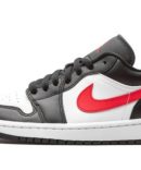 The Women’s Air Jordan 1 Low ‘Siren Redu002FBlacku002FWhite’ is yet another highly versatile colorway of Michael Jordan’s first signature shoe fitted in women’s sizing. Like the Air Jordan 1 Mid. the Jordan 1 Low is one of the most playful canvases in Jordan’s collection. the model appearing in high-profile collaborations and everyday lifestyle looks alike. The ‘Siren Redu002FBlacku002FWhite’ features a crisp white leather base with contrasting black leather overlays on the forefoot. eyelets. collar. and heel. A vibrant Siren Red leather Swoosh emblem is situated on either side of the shoe. The same bright shade of red appears on the ‘Wings’ embroidery on the black leather heel and on the Jumpman stitched onto the black nylon tongue. Tonal ’23’ branding can be found on the lace overlay. A white midsole and black outsole put the finishing touches on the design of the Women’s Air Jordan 1 Low ‘Siren Redu002FBlacku002FWhite.’