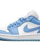 The Air Jordan 1 Low ‘UNC’ is the low-top version of Michael Jordan’s first signature shoe that sports the team uniform colors of the North Carolina Tar Heels. Both sneaker fans and collectors routinely rank the ‘UNC’ color scheme as one of the greatest looks in Air Jordan history. This Spring 2020 release features a white leather mid-panel and toe. Baby blue leather overlays on the forefoot. mid-foot. and heel provide contrasting against the neutral base. A University Blue leather Swoosh is found on each side. and a white embroidered Wings logo graces the heel. Jordan Brand finishes off the look with an embroidered blue Jumpman on the white nylon tongue and ’23’ detailing on the lace stay. Release date: Spring 2020.