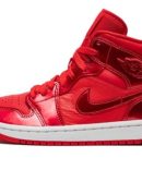 The Women’s Air Jordan 1 Mid ‘Pomegranate’ is a women’s-exclusive colorway of the popular lifestyle shoe that turns heads with its all-red-everything aesthetic. The ‘Pomegranate’ channels a similar energy to that of the all-red Air Jordan 1 High OG’s ‘Legends of Summer’ colorway. one of the most desirable Jordan 1 releases in history. University Red leather is found on the perforated toe. mid-panel. and collar. The overlays. ‘Wings’ logo on the collar. and Swoosh on the sides are designed in Pomegranate-colored synthetic leather with a metallic finish. The monochromatic red design is broken up by a white rubber midsole. Underfoot. a University Red rubber outsole completes the look.