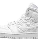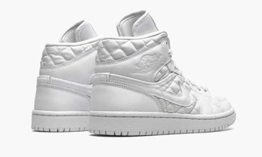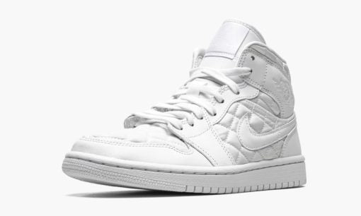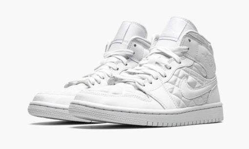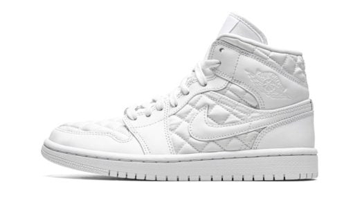 The Women’s Air Jordan 1 Mid ‘Quilted White’ is the women’s sizing of Michael Jordan’s first signature shoe with an upgraded leather construction. Playing up on its ‘Quilted White’ nickname. this Jordan 1 Mid displays a white monochromatic appearance with plush quilted leather on the mid-panel and collar that is reminiscent of the material found on the ‘Multicolor’ Women’s Jordan 2. Elsewhere. smooth white leather overlay panels can be found on the forefoot. eyelets. collar. and heel. The same crisp leather also appears on the perforated toe and mid-panel. Tonal Swoosh detailing on either side of the shoe and ‘Wings’ branding on the collar gives the ‘Quilted White’ a timeless look.