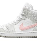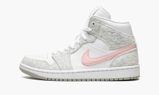 The Women’s Air Jordan 1 Mid SE ‘Heather Greyu002FPink’ is a casual colorway of the women’s version of Michael Jordan’s first signature shoe. From Jordan Brand’s Spring 2022 collection. the ‘Heather Greyu002FPink’ features heather grey canvas overlays against a crisp white tumbled leather base. A pink leather Swoosh is found on both sides of the shoe and a tonal ‘Wings’ logo is located on the collar. On the tongue. a silver Jumpman with ‘Air’ branding adds a classic Jordan 1 look. Underfoot. a white rubber midsole and grey outsole complete the look.