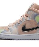 The Women’s Air Jordan 1 Mid ‘P(Her)spective’ is a unique colorway of Michael Jordan’s first signature shoe in mid-top form. This unique P(Her)spective design features pastel hues for an off-the-court appeal. Washed Coral suede forms the base of the upper. appearing on the perforated toe. mid-panel. and collar. Contrasting nubuck overlays on the forefoot. collar. and heel display soothing hues of green and blue. Branding appears in the form of Silver Metallic Swooshes on the mid-panel. neon green ‘Wings’ detailing on the collar. and chrome ‘Nike Air’ patches on the tongue. The Women’s Air Jordan 1 Mid ‘P(Her)spective’ was released on June 20. 2020.