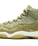 The Women’s Air Jordan 12 ‘Olive Lux’ is a women’s exclusive colorway of the iconic silhouette. Released during the holiday 2018 season. the ‘Olive Lux’ or ‘Neutral Olive’ colorway offers an impeccable look for the Air Jordan 11. It features an olive suede upper. and the shoe’s traditional patent leather mudguard is replaced by a suede that has a metallic marbled treatment for a thoroughly unique look. Other luxurious details are present. including metal Jumpman logos. metallic branding on the heels and tongue. and a golden lace dubrae on both laces. The Jordan 11 is finished with a semi-translucent olive rubber outsole. With its premium look. the Women’s Air Jordan 12 ‘Olive Lux’ is a must-have for female Air Jordan fans.